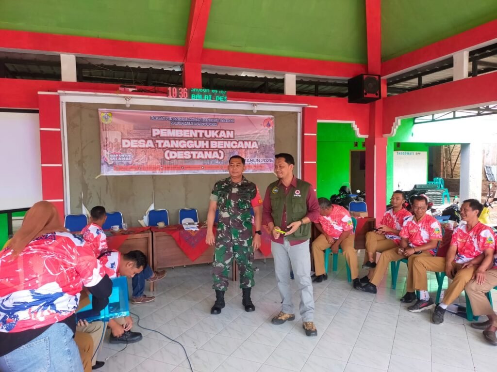 Wujudkan Ketangguhan Wilayah, Babinsa 0822 Hadiri Pembentukan Desa Tangguh Bencana di Sumber Gading Kab Bondowoso