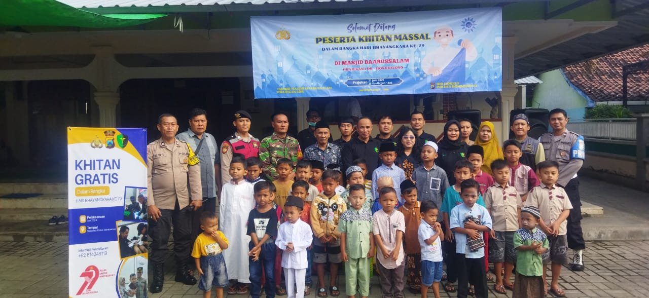 Bondowoso, 21 Mei 2025 — Solidaritas TNI-Polri kembali terjalin erat dalam aksi sosial khitanan massal yang digelar di Masjid Babussalam, Desa Prajekan Lor, Kecamatan Prajekan, Kabupaten Bondowoso. Kegiatan ini digelar dalam rangka memperingati Hari Bhayangkara ke-79, dan diikuti oleh 55 anak dari berbagai wilayah sekitar. Antusiasme peserta dan dukungan warga menciptakan suasana hangat dan penuh kebersamaan.