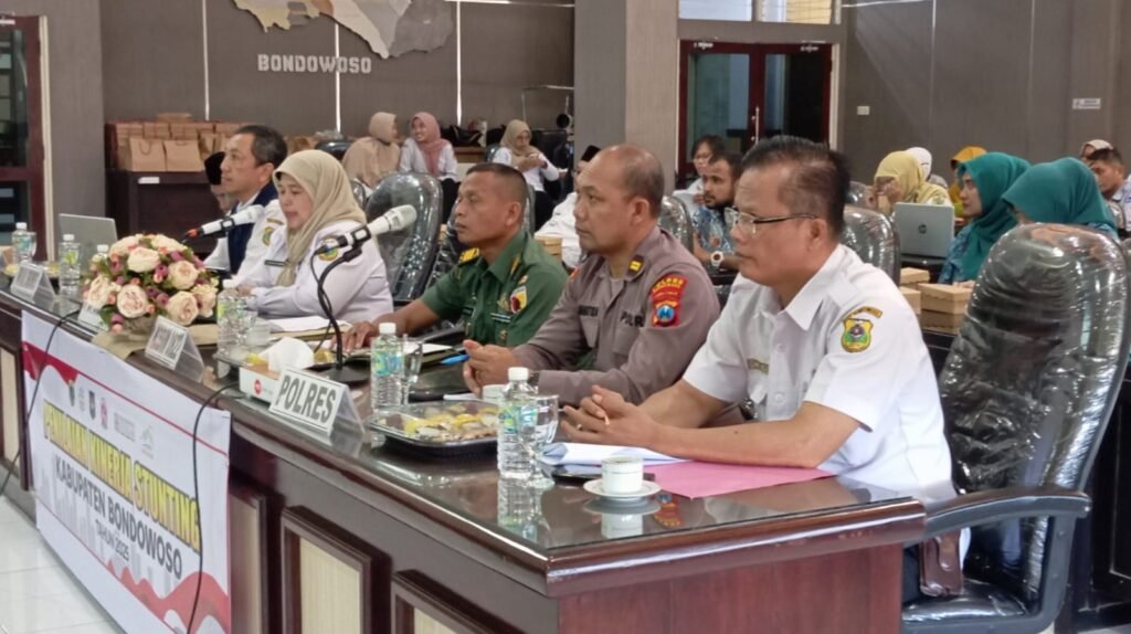 Bondowoso — Komando Distrik Militer (Kodim) 0822 turut ambil bagian dalam kegiatan Video Conference (Vidcon) Penilaian Kinerja Pencegahan dan Percepatan Stunting (PPPS) Kabupaten/Kota se-Jawa Timur tahun 2025 yang digelar pada Rabu, 11 Juni 2024. Acara ini berlangsung di Aula Shaba Bina Praja I Kantor Pemkab Bondowoso, Jl. Letnan Amir Kusnan No.02, Kelurahan Dabasah, dan diikuti oleh sekitar 60 peserta dari berbagai instansi.