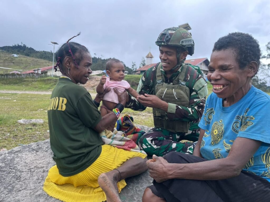 Seorang mama Papua dengan anak kecil di gendongan tersenyum lebar, sembari berkata, “Anak tentara baik hati, Tuhan berkati.” Kalimat sederhana itu menggambarkan betapa besar dampak dari sentuhan kemanusiaan ini.