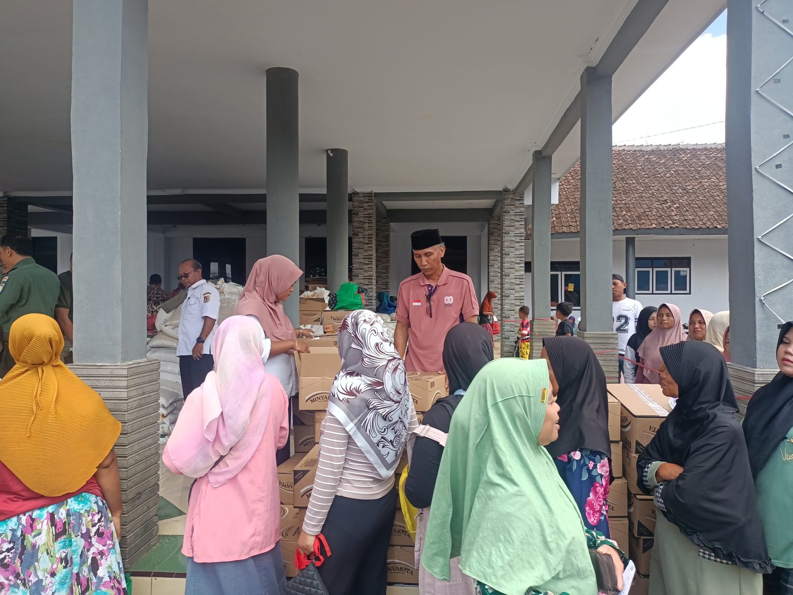 Warga antusias mengantri untuk menerima bantuan berupa beras dan minyak goreng dari 5 dusun yang ada di desa sumberlesung yakni.1. dusun Krajan Lao, ,2.dusun karang kebun ,.3. dusun karang bire,4 dusun sumber lesung Lao,5.dusun sumberlesung Onjur .masing-masing setiap kepala keluarga mendapatkan minyak goreng 4 Liter beras 20 kg total penerima manfaat di desa sumberlesung 1366 kepala keluarga