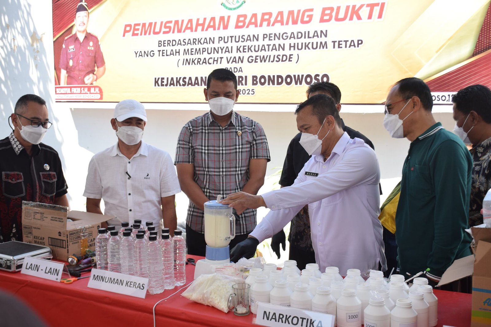 BONDOWOSO,Pada 12 September 2025 – Kejaksaan Negeri Bondowoso bersama jajaran TNI, Polri, dan instansi terkait menggelar kegiatan pemusnahan barang bukti tindak pidana yang telah mempunyai kekuatan hukum tetap (inkracht van gewijsde) di Kantor Kejaksaan Negeri Bondowoso, Jumat pagi. Kegiatan ini dipimpin langsung oleh Kajari Bondowoso, Dzakiyul Fikri, S.H., dan dihadiri sekitar 40 orang, termasuk Pasi Intel Kodim 0822 Bondowoso, Kapten Inf Moeljianto, yang mewakili Dandim 0822 Bondowoso.