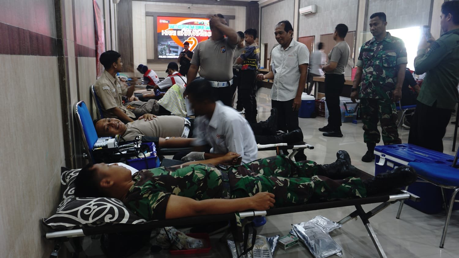 Bondowoso – Dalam rangka memperingati Hari Ulang Tahun (HUT) Bhayangkara ke-73, Kodim 0822 Bondowoso menunjukkan sinergi dan kepedulian kemanusiaannya dengan turut berpartisipasi dalam kegiatan donor darah yang digelar di Aula Polres Bondowoso pada Selasa, 17 Juni 2025. berlangsung di Jalan Veteran No.1, Mandaluki, Kelurahan Dabasah, Kecamatan Bondowoso.
