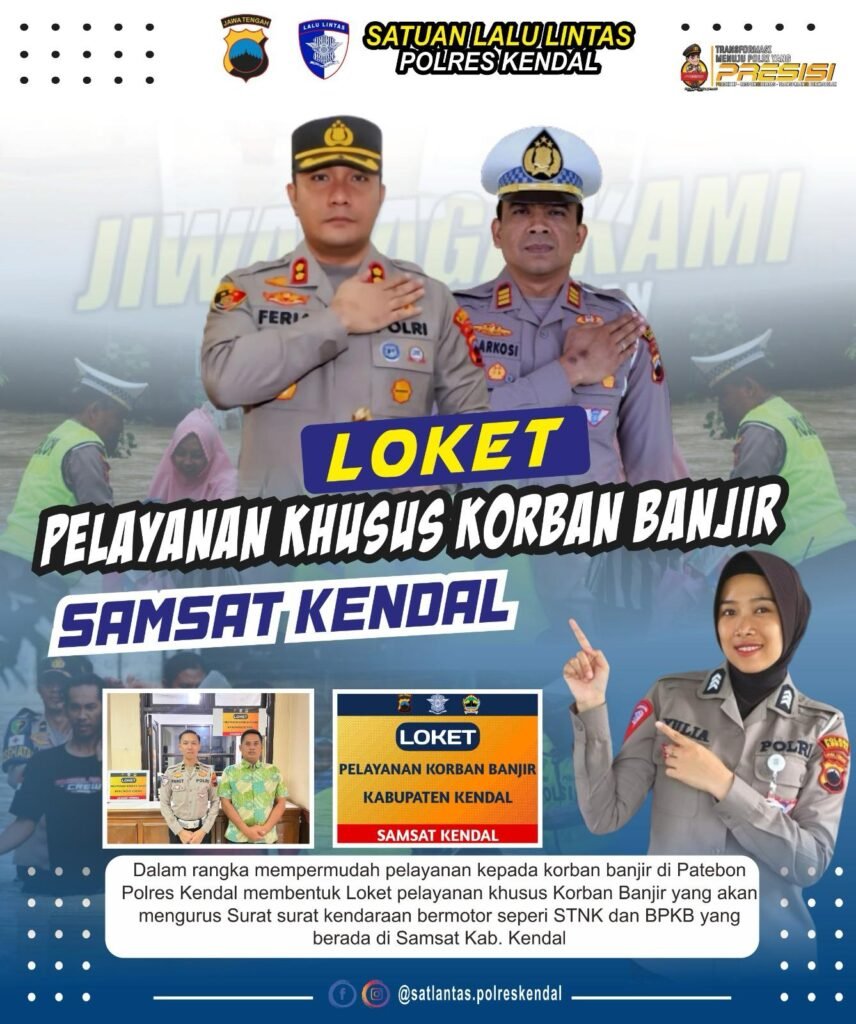 Loket ini akan beroperasi di Samsat Kabupaten Kendal selama masa pemulihan pasca-banjir. Polres Kendal juga mengimbau masyarakat agar segera melaporkan kehilangan atau kerusakan dokumen kendaraan mereka ke loket khusus ini untuk mendapatkan penggantian yang diperlukan.( J Ari)