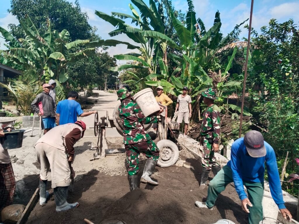 Boyolali. Personel Kodim 0724/Boyolali beserta warga masyarakat melakukan pengecoran jalan di Desa Kalinanas Kecamatan Wonosamudro Kabupaten Boyolali. Minggu ( 16/02/25)