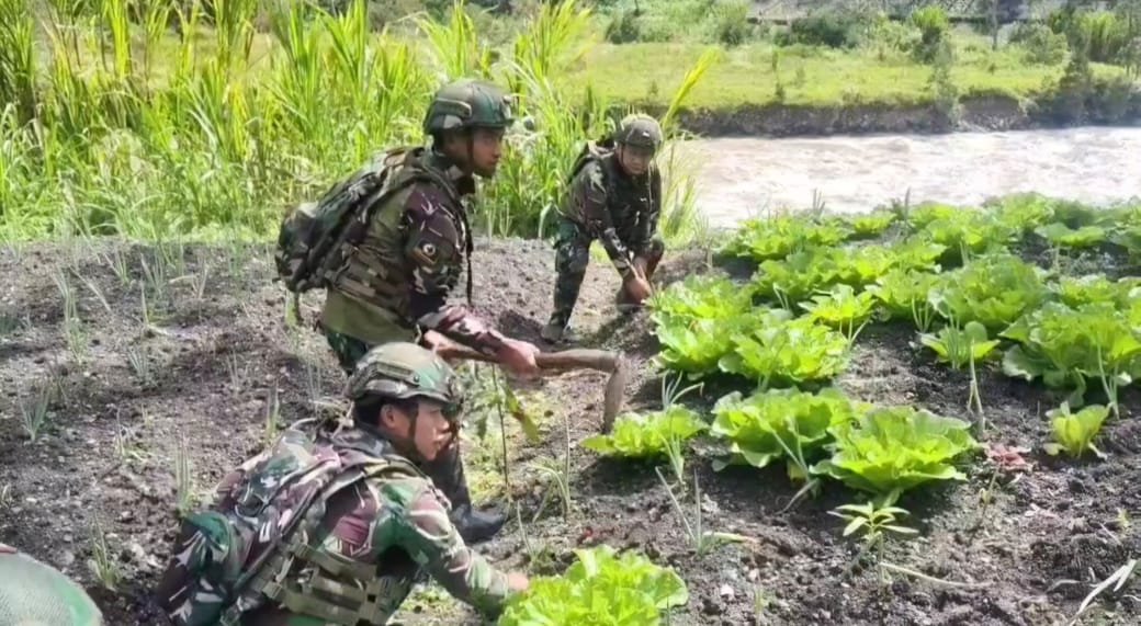 TNI Satgas Yonif 521/DY Membagikan bibit tanaman pertanian seperti sayuran, buah, dan jagung kepada masyarakat di berbagai wilayah Papua sebagai bagian dari program pembinaan teritorial untuk mendukung ketahanan pangan dan kesejahteraan rakyat.