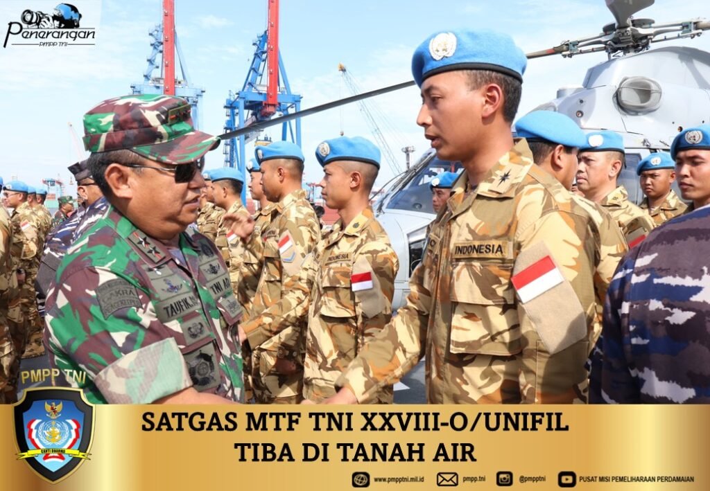 Bogor, 16 Februari 2025 –Komandan Pusat Misi Pemeliharaan Perdamaian (Dan PMPP) TNI Mayjen TNI Taufik Budi Santoso, S.Hub.Int., M.H.I., menghadiri penyambutan kepulangan Satgas Maritime Task Force (MTF) XXVIII-O/UNIFIL setelah melaksanakan misi perdamaian di Lebanon selama 1 tahun.