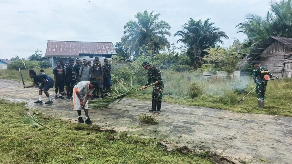 ‎[ PAPUA, 14 Februari 2026 ] – Satuan Tugas (Satgas) Kewilayahan Yonif 123/Rajawali melalui Pos Kaibar kembali menunjukkan kepedulian dan komitmennya dengan menggelar kegiatan karya bakti bersama masyarakat di Kampung Amazu, Distrik Kaibar, Kabupaten Mappi, Papua Selatan. Kegiatan ini bertujuan untuk mempererat hubungan antara TNI dan masyarakat setempat.