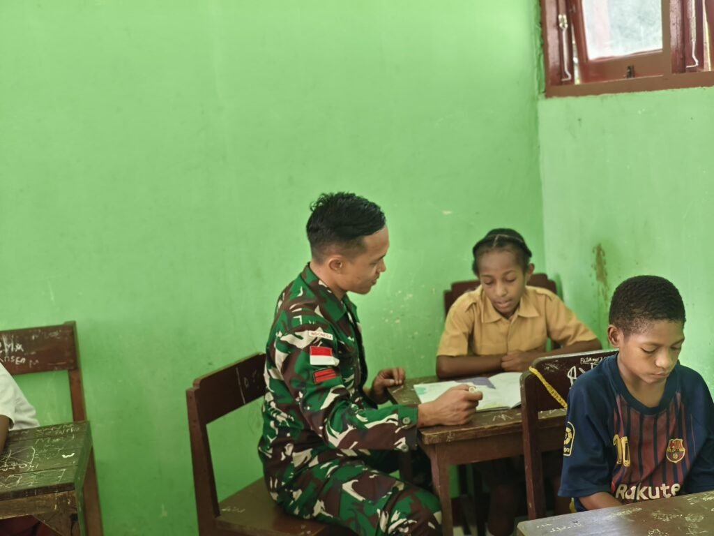 [ KEEROM ] – Dalam upaya mendukung kemajuan pendidikan di daerah perbatasan Papua, Satgas Yonif 131/BRS Pos Waris terlibat aktif membantu mengajar di SD Negeri kp.